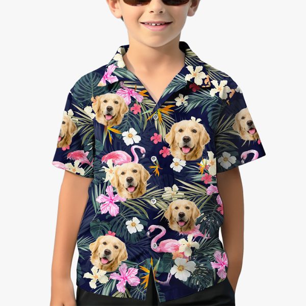Custom Photo Kid Tropical Vibes Only – Dog & Cat Personalized Custom Unisex Tropical Hawaiian Aloha Shirt – Summer Vacation Gift, Birthday Gift For Kids, Pet Owners, Pet Lovers