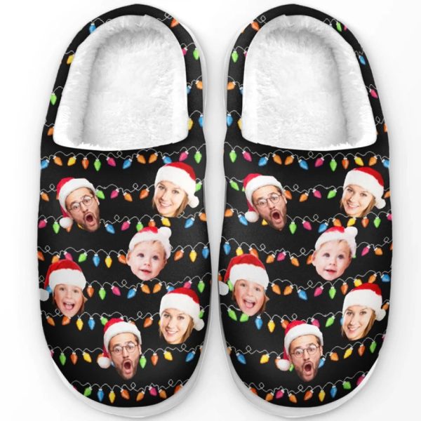 Custom Photo My Favorite Color Is Christmas Lights – Family Personalized Custom Fluffy Slippers – Christmas Gift For Family Members