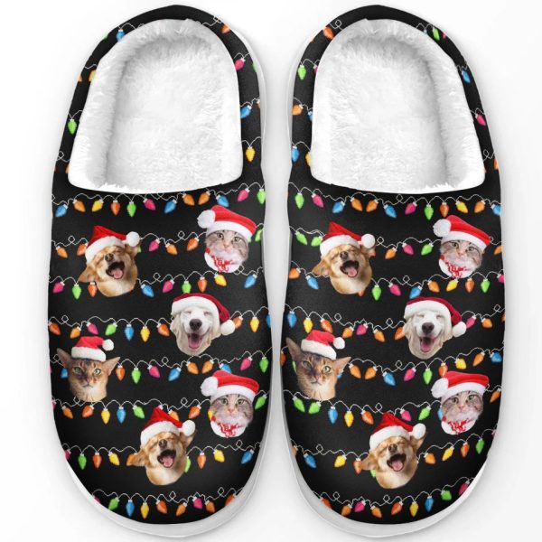 Custom Photo Pawsitively Chilly Merry And Bright – Dog & Cat Personalized Custom Fluffy Slippers – Gift For Pet Owners, Pet Lovers