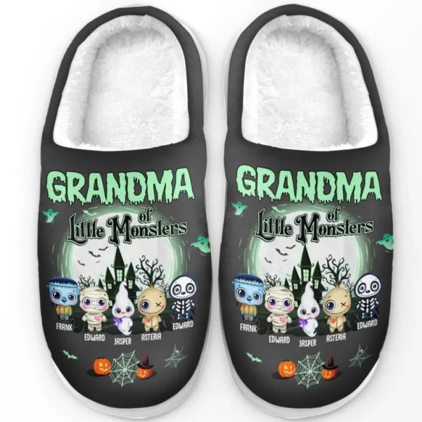 Grandma Of Little Monsters – Family Personalized Custom Fluffy Slippers – Halloween Gift For Mom, Grandma