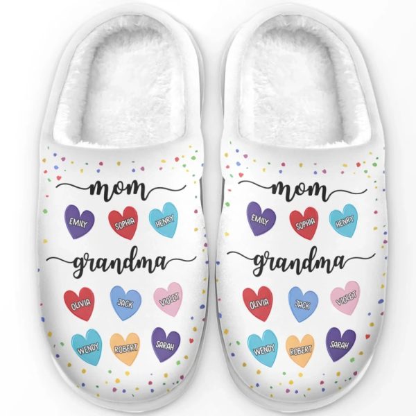 From Grandma To Mom, The Love Never Ends – Family Personalized Custom Fluffy Slippers – Mother’s Day, Gift For Mom, Grandma