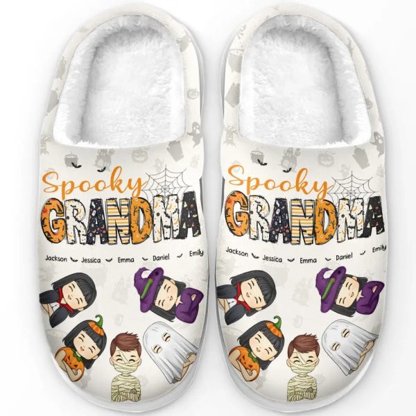 Too Much Of A Cutie To Be Spooky – Family Personalized Custom Fluffy Slippers – Halloween Gift For Mom, Grandma