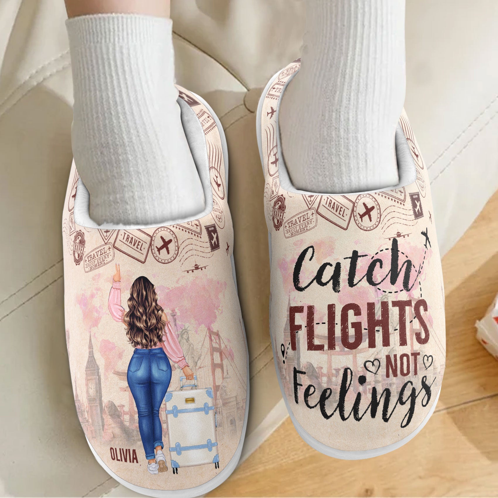 Catch Flights Not Feelings – Personalized Slippers