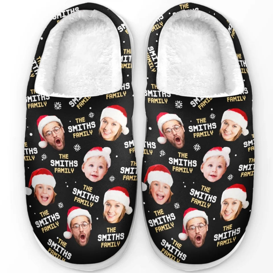 Custom Photo The Heart Of A Family Shines In Every Face – Family Personalized Custom Fluffy Slippers – Christmas Gift For Family Members