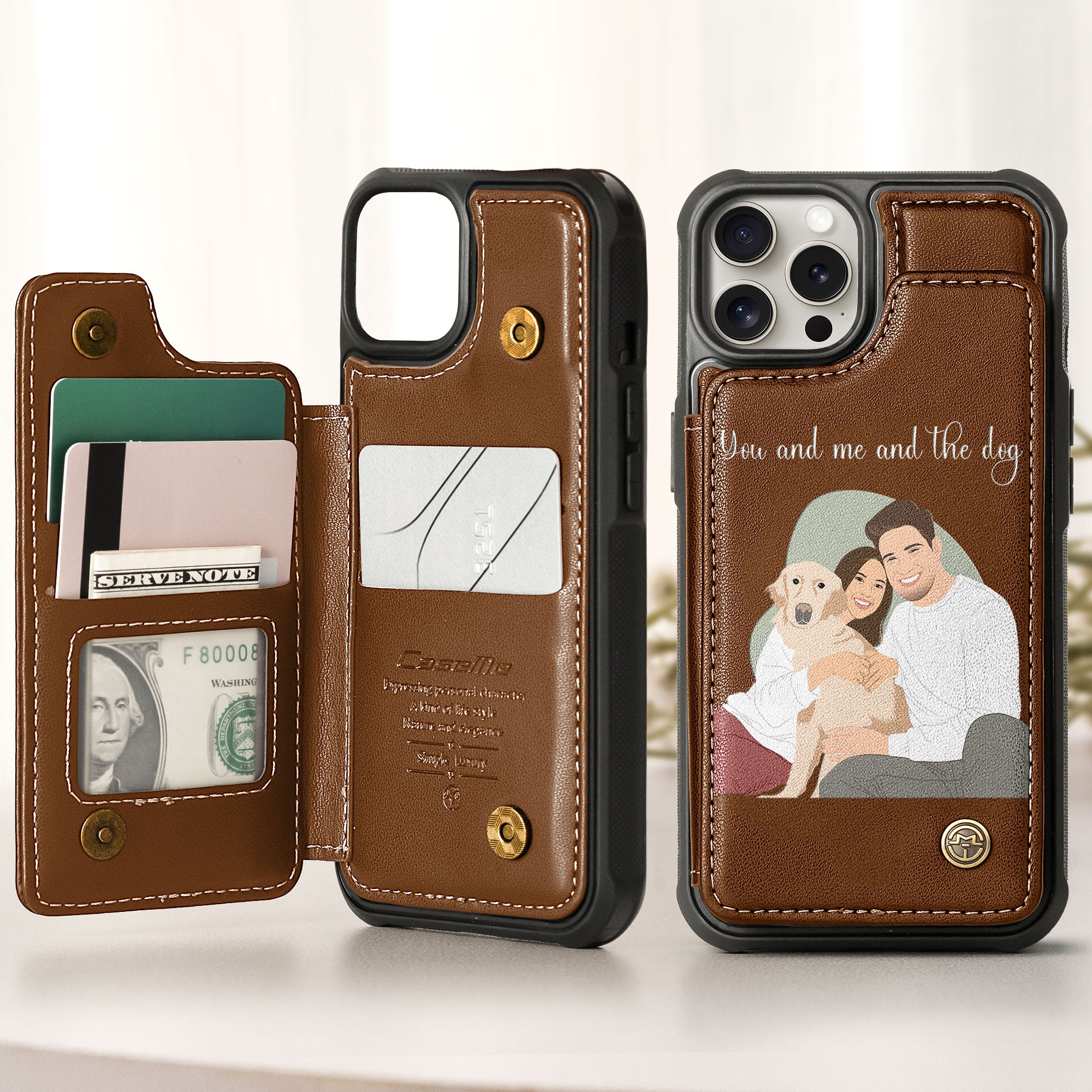 Faceless Portrait Drawing – For Couples, Friends, Pet – Personalized Photo Leather Flip Wallet Phone Case